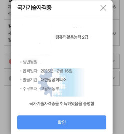 URL복사 링크가 복사되었습니다.kimm**** / 2026-01-11 컴활 2급 필기 실기 자격증 수강후기