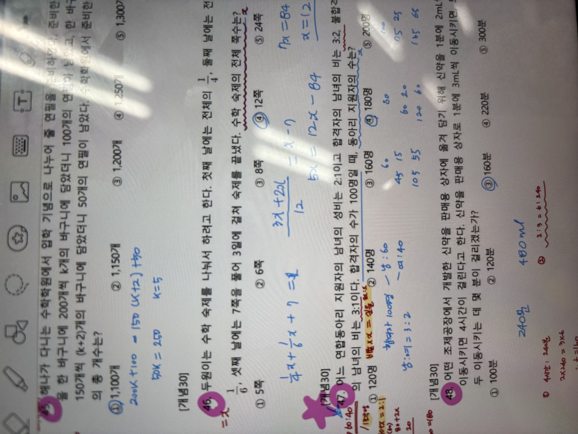 특히 액세스는 처음 들어서 처음에 따라가기 너무 힘든 거에요. 그래서 교재를 하나는 필기 있는 버전, 하나는 필기 없는 버전으로 해서 처음에 할 때는 필기 마구마구해서 밖에서도 쉽게 볼 수 있게 메모를 했구요. 하나는 필기 없는 버전으로 해서 실전처럼 연습할 때 패드 세로로 세운 후에 시험장처럼 연습했습니다!