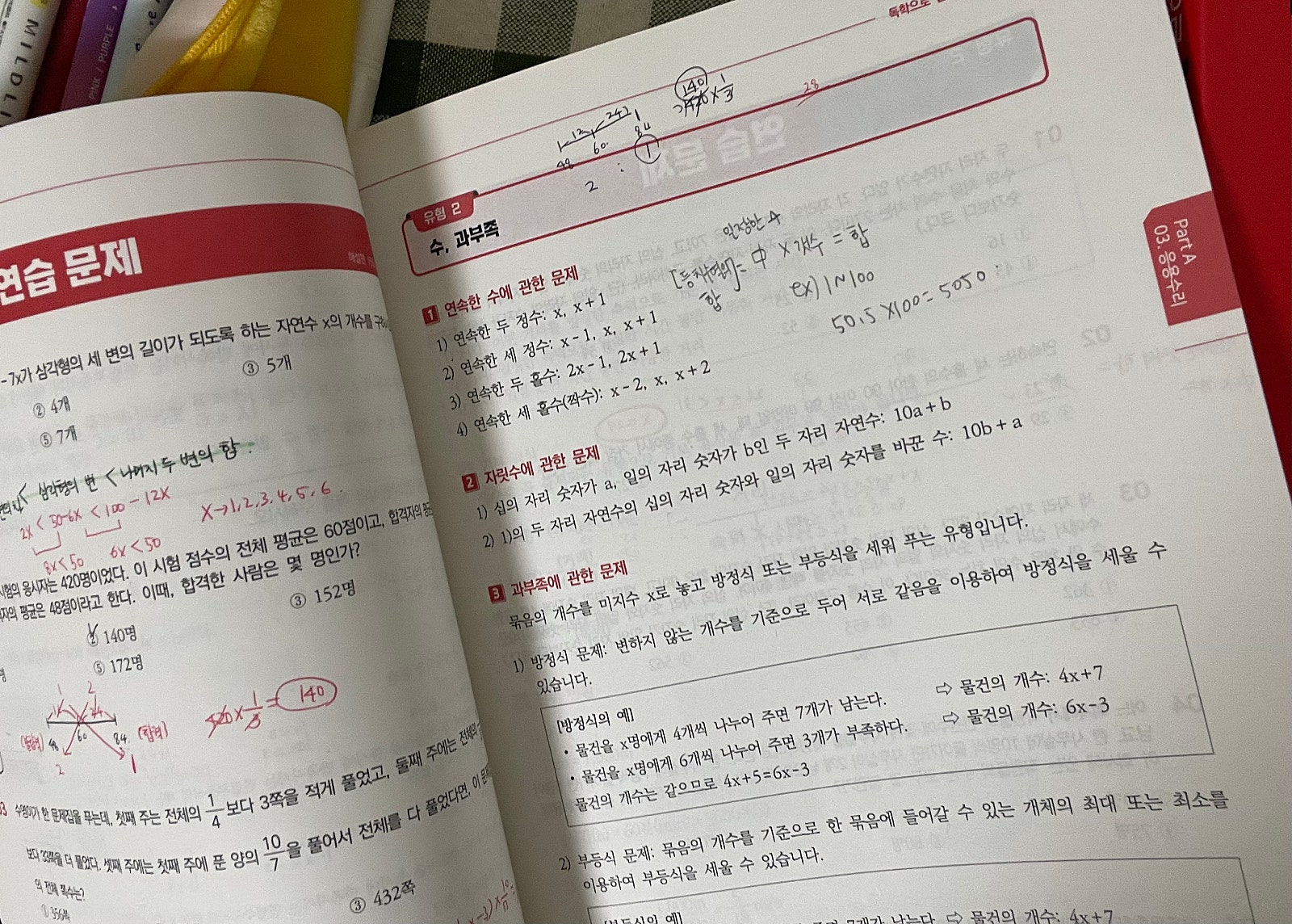 확률과 통계는 문제만 봐도 포기하던 파트였는데, 경우를 어떻게 나누는지부터 차근차근 설명해줘서 문제를 읽는 게 조금 편해졌다. 도형도 공식만 외우는 게 아니라 왜 그렇게 푸는지 알려줘서 접근하기 쉬웠다.