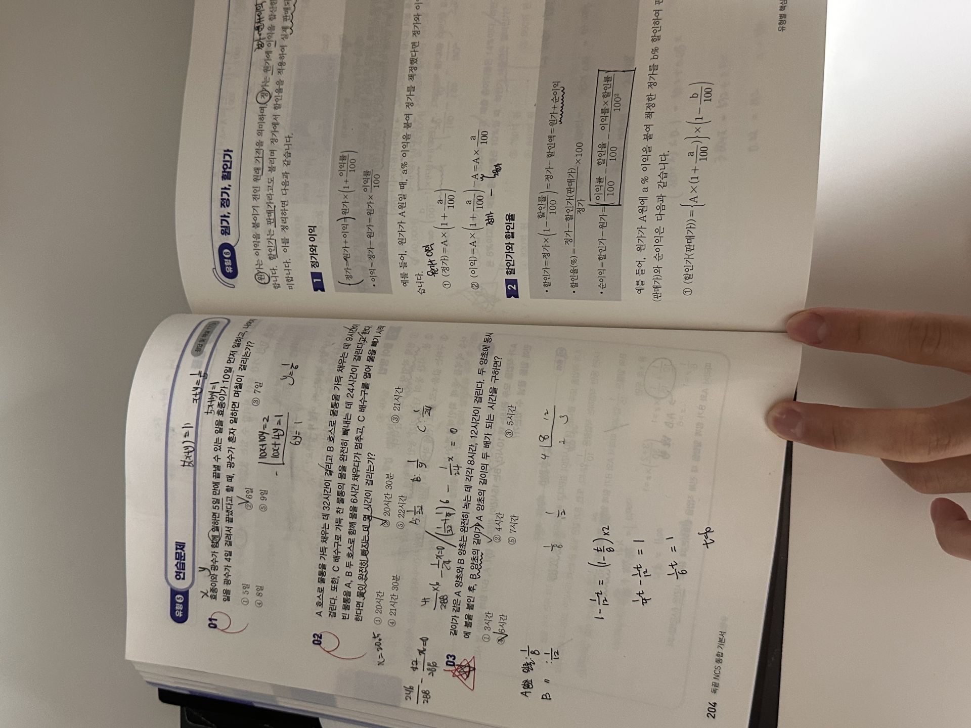 또, 기초 NCS부터 응용수리 파트까지 연결해서 설명해주셔서 좋았습니다. 저는 응용수리에서 특히 약했던 증감률, 거속시, 원가 및 이익금, 일 수 계산, 소금물 농도 유형을 빠르게 푸는 스킬을 배웠는데, 단순 공식 암기보다 “왜 이 방식이 더 빠른지”를 기준으로 풀이 흐름을 정리해주는 점이 도움이 됐습니다. 예를 들어 증감률은 불필요한 계산을 줄이는 변환 방식이 있었고, 거속시는 문제 조건을 정리하는 순서만 바꿔도 시간이 확 줄어드는 게 느껴졌어요.