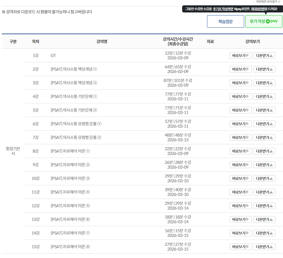 특히 자료해석 부분 강사님 너무 잘 가르치시고 이해하기 쉽게 알려주셔서 공부할 때 재밌게 임할 수 있었어요!