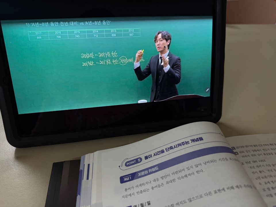 강의는 처음부터 끝까지 시험에 꼭 필요한 것만을 다루고 있었다. 개념 설명은 극소량이고, 합격자들의 문제 풀이 전략이나 강사님들의 꿀팁 같은 것들을 전달해주셨다. 내가 원래 풀던 방식보다 시간을 절반 이상 줄일 수 있는 방법들을 알려주셨다.