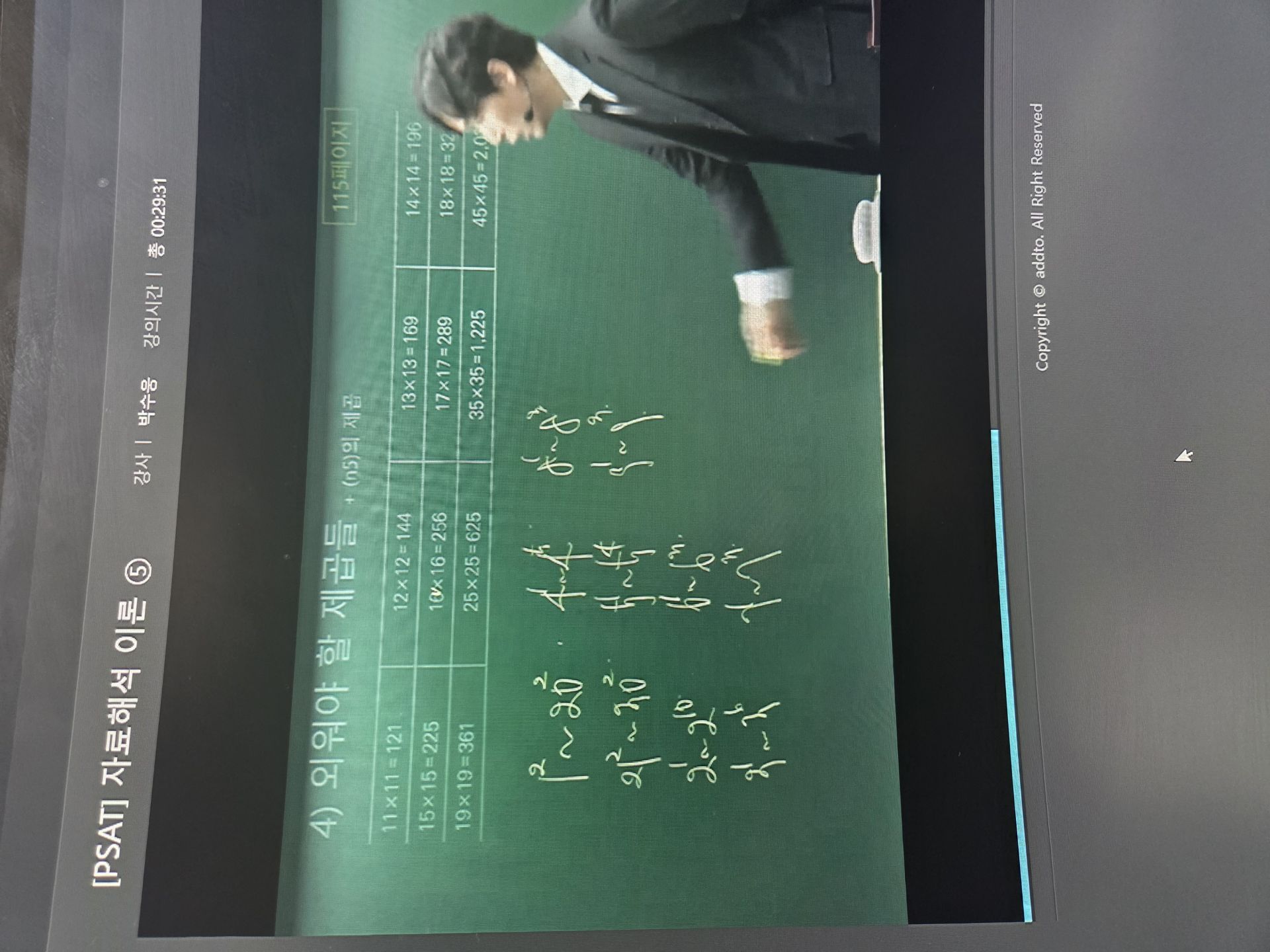 교재에는 일부만 나와 있었는데, 강의에서는 그보다 훨씬 많은 제곱수들을 다 외우라고 하셨다.