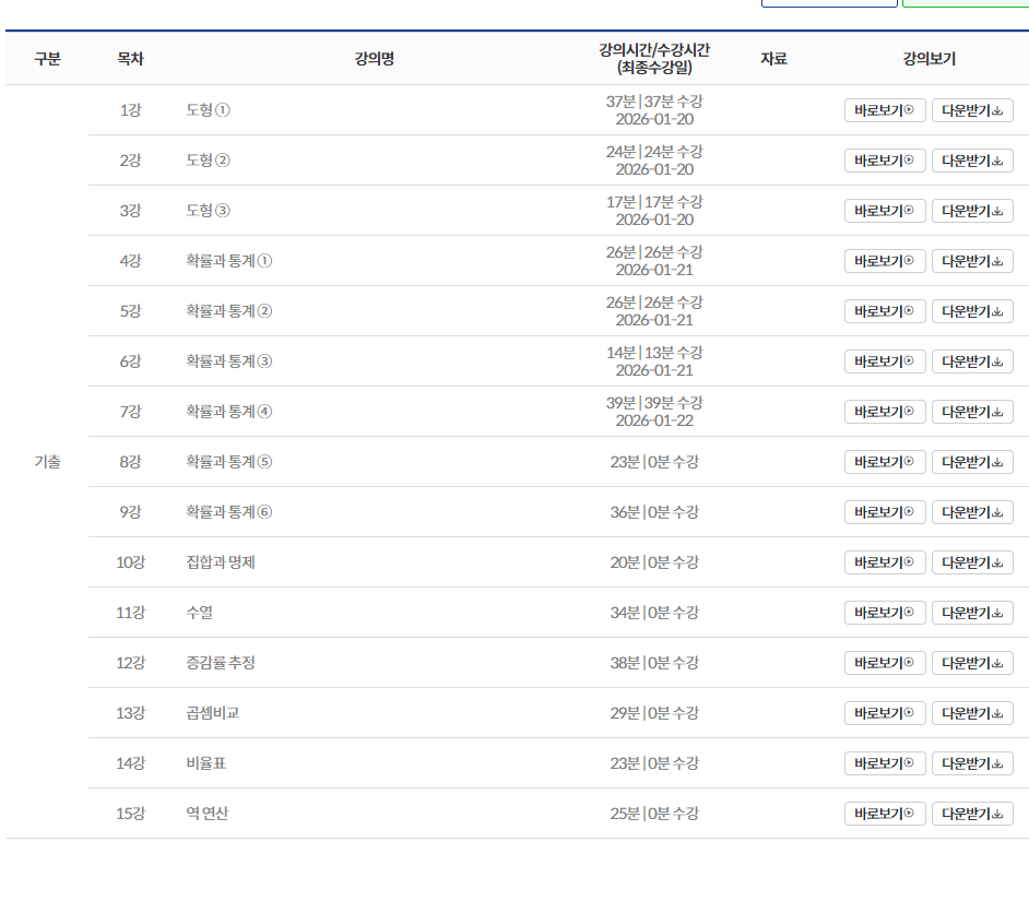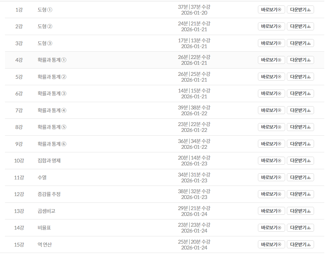 다른 수학 강의를 들어봤는데 그때는 쌤 목소리가 집중이 영 안되는 느낌이라 완강이 힘들었거든요.