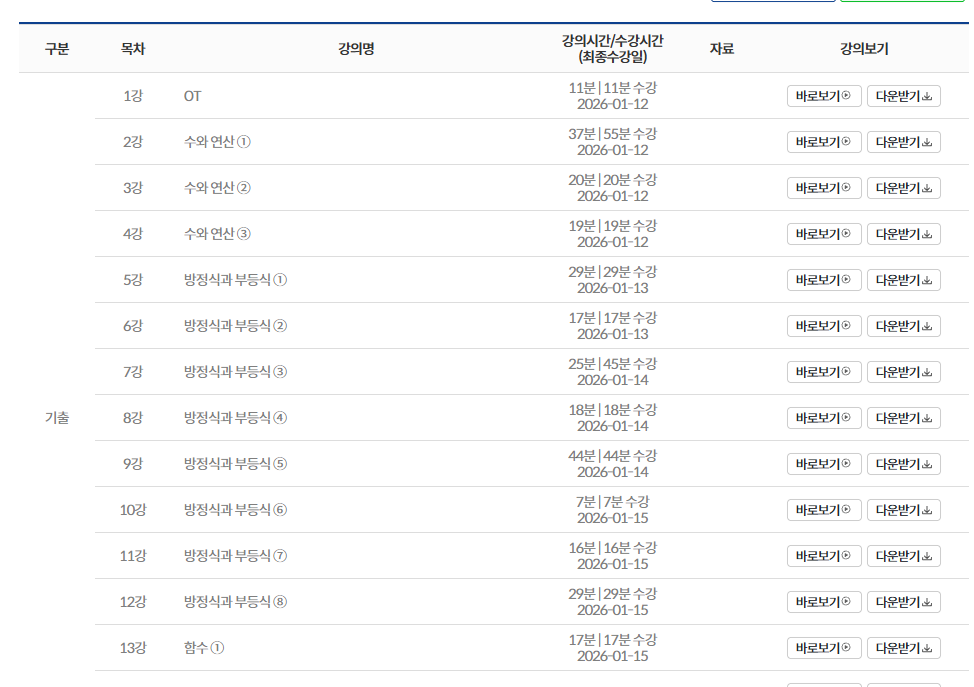 강사님이 너무 설명을 잘해주셔서 수포자였던 저도 반복해서 들으니까 이해가 되더라구요