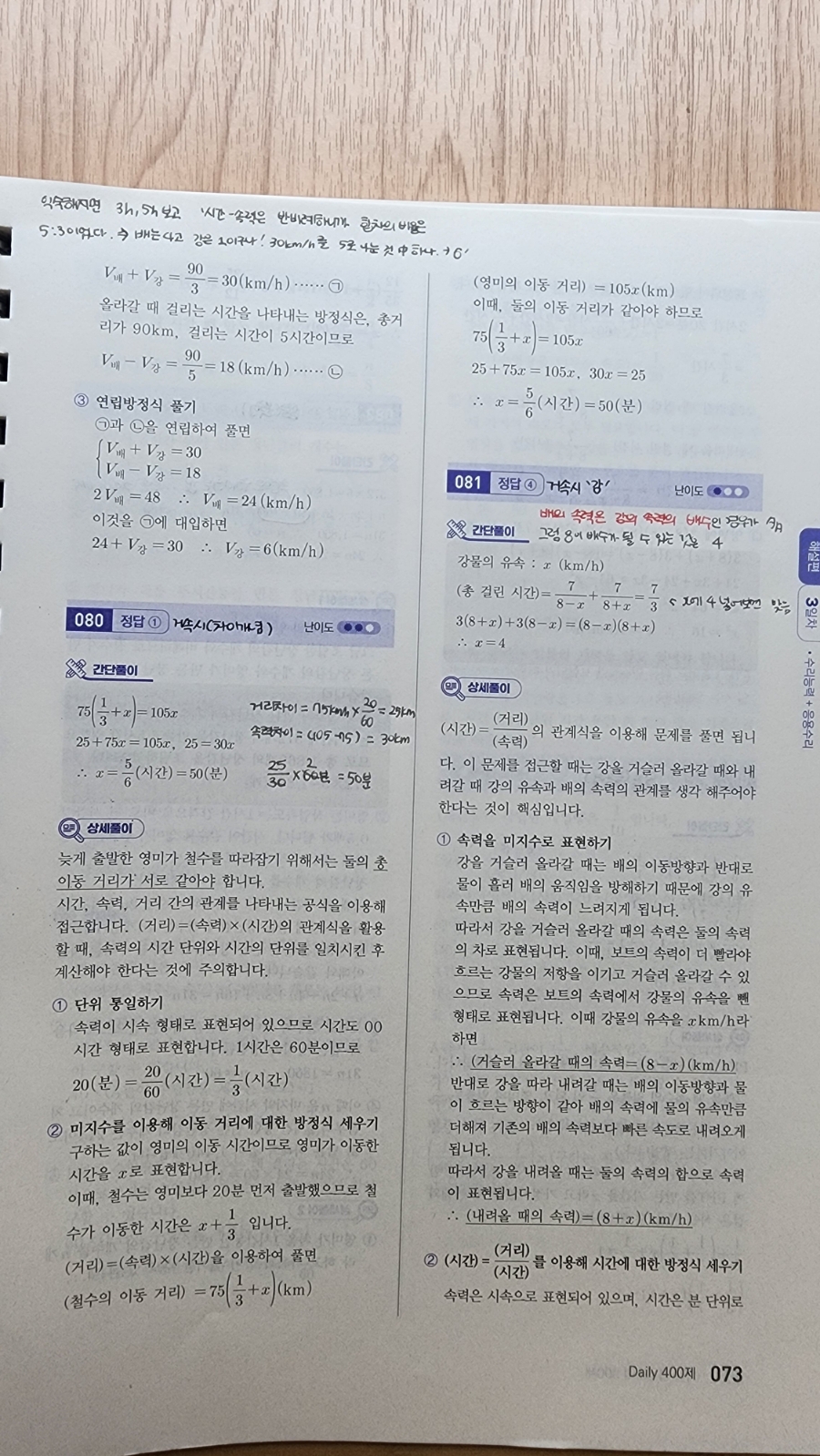 오랜만에 수학 문제를 풀고 강의 들으니까 재밌네요. 거속시 부분 강의는 한 번 더 들으면서 복습했어요.