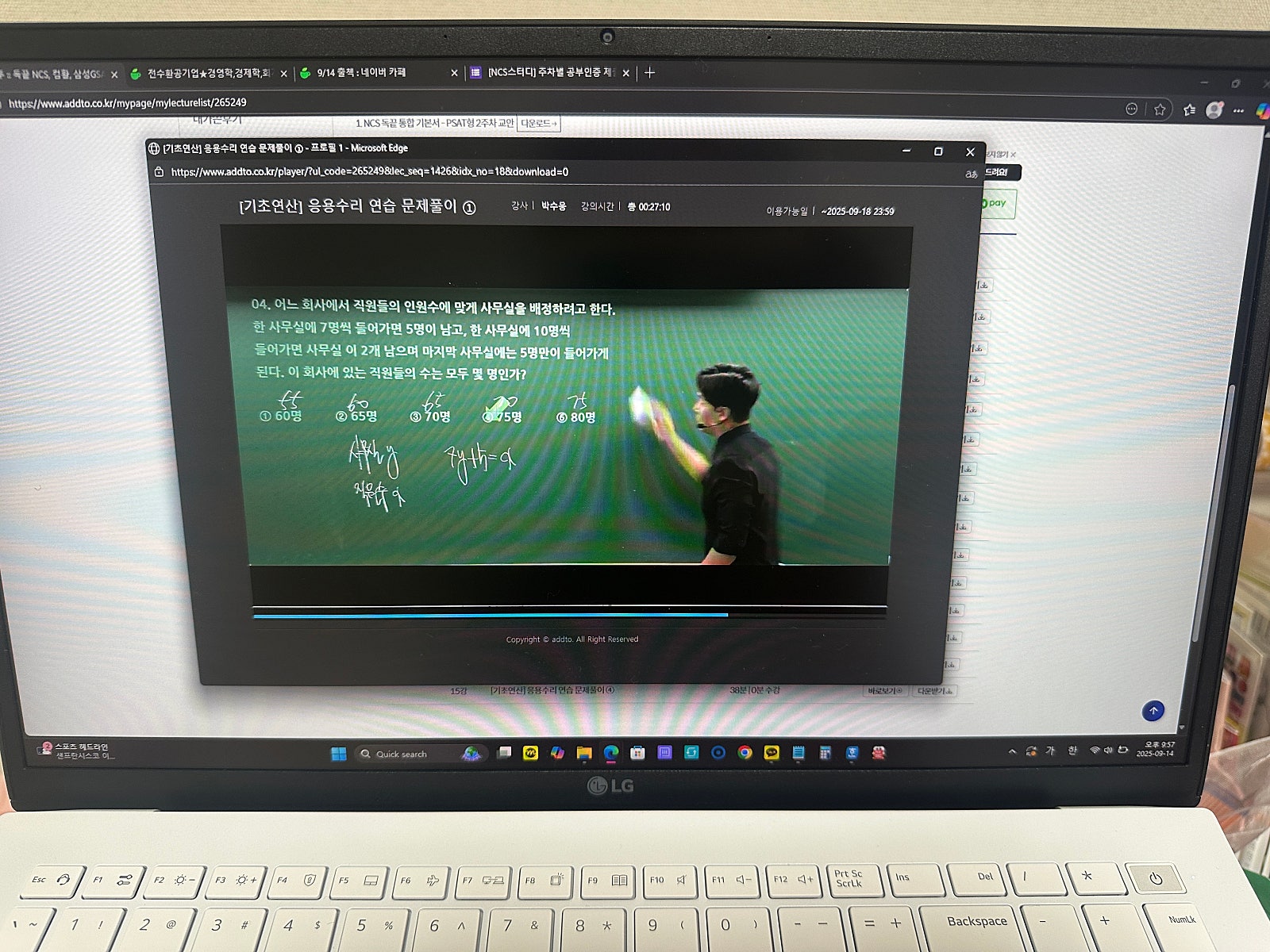 의사소통을 많이 듣지는 못해서 다음주 부터는 의사소통도 병행하면서 의, 수, 문 30문제씩 매일 푸는게 목표입니당