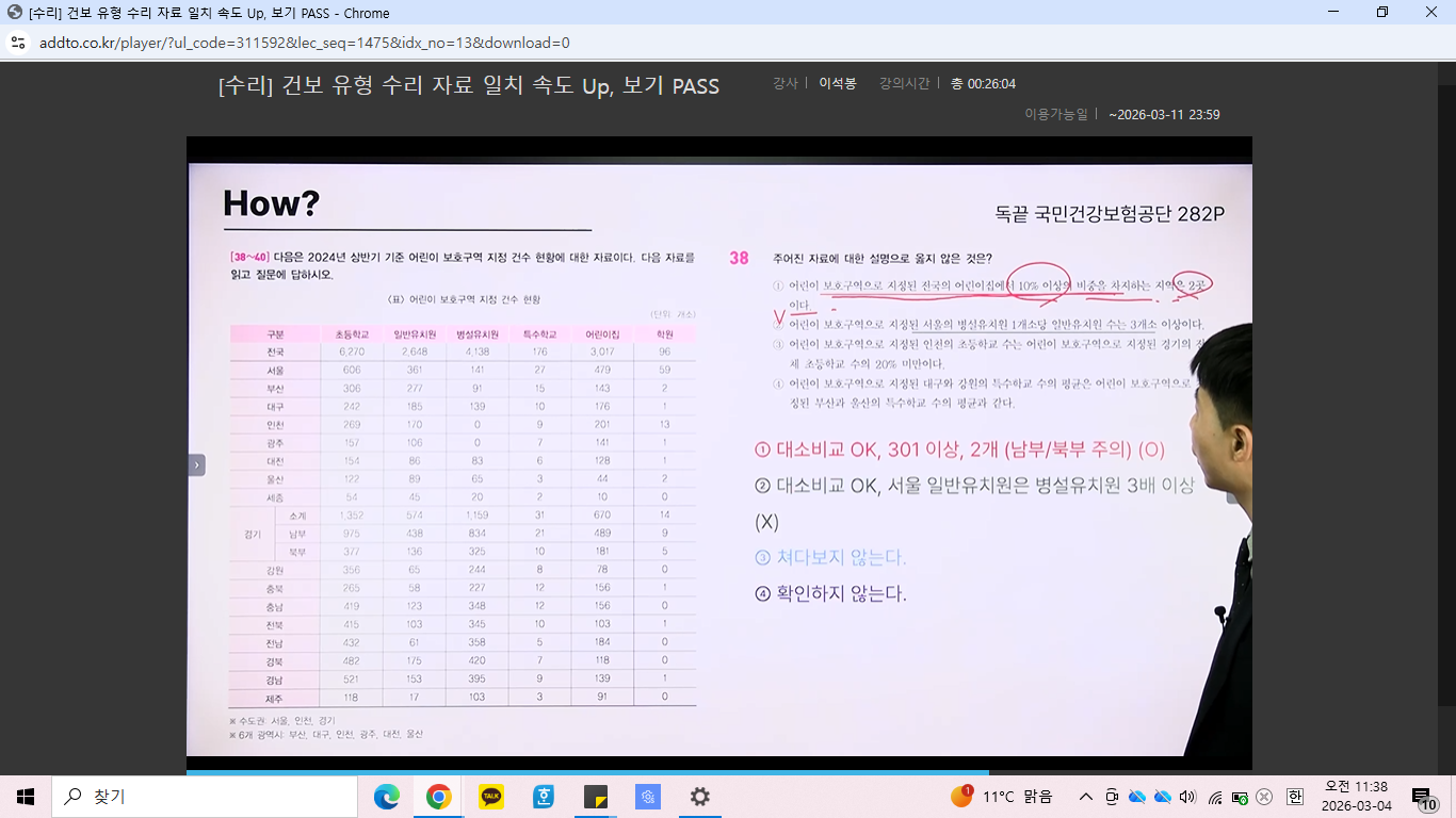 2강과 3강에서는 코레일 NCS 기출을 기반으로 실제 시험에서 푸는 순서와 과감히 버려야 할 유형, 그리고 다 계산하지 않아도 되는 필수 수리 연산법만 정리해 주셔서 문제 접근 속도가 눈에 띄게 빨라졌습니다. 특히 ‘다 풀지 않는다’, ‘되도록 덜 계산한다’는 강의 콘셉트가 수험생 입장에서 현실적으로 와닿았습니다. 이후 유효숫자, 어림산, 응용수리 30초 풀이법, 자료일치·독해 유형 공략까지 이어지며 실제 시험장에서 바로 써먹을 수 있는 기준이 정리되었습니다.
