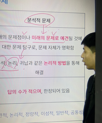 강의는 단순히 문제 풀이를 반복하는 방식이 아니라 자주 출제되는 유형을 중심으로 최적의 풀이 순서와 사고 흐름을 정립해 주는 실전형 커리큘럼으로 구성되어 있었습니다. 무작정 모든 선지를 다 따져보려던 기존의 나쁜 습관을 버리고, 필요한 조건부터 걸러서 적용하는 '읽는 순서'의 기술을 전수해 주어 풀이를 한결 깔끔하게 만들어 주었습니다. 또한 다양한 풀이 팁과 정답 판별 기준은 손이 멈추는 시간을 획기적으로 줄여주었습니다. 특히 경로 문제나 추론 유형을 다룬 심화 강의는 복잡한 구조를 유형화하여 무작정 계산이나 답 찾기 시도부터 하던 저의 나쁜 습관을 완전히 고쳐놓았습니다.