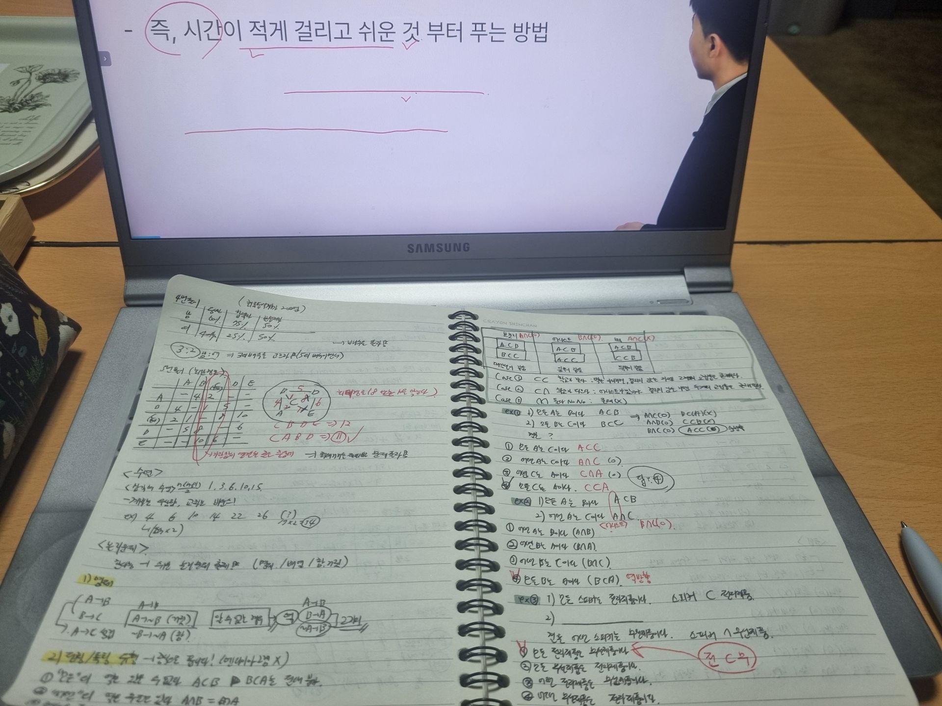 강의는 단순히 문제 풀이를 반복하는 방식이 아니라 자주 출제되는 유형을 중심으로 최적의 풀이 순서와 사고 흐름을 정립해 주는 실전형 커리큘럼으로 구성되어 있었습니다. 무작정 모든 선지를 다 따져보려던 기존의 나쁜 습관을 버리고, 필요한 조건부터 걸러서 적용하는 '읽는 순서'의 기술을 전수해 주어 풀이를 한결 깔끔하게 만들어 주었습니다. 또한 다양한 풀이 팁과 정답 판별 기준은 손이 멈추는 시간을 획기적으로 줄여주었습니다. 특히 경로 문제나 추론 유형을 다룬 심화 강의는 복잡한 구조를 유형화하여 무작정 계산이나 답 찾기 시도부터 하던 저의 나쁜 습관을 완전히 고쳐놓았습니다.