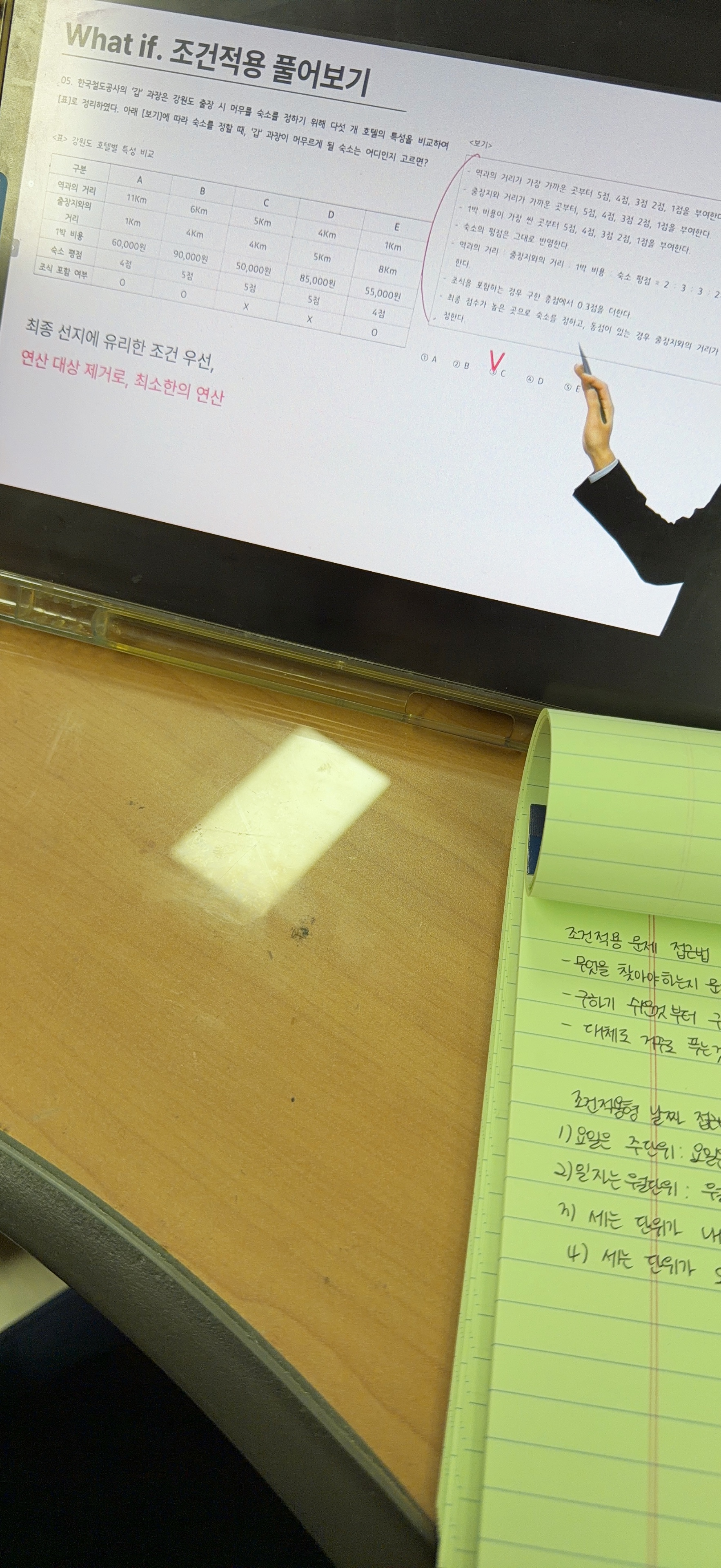 강의는 단순히 문제 풀이를 반복하는 방식이 아니라 자주 출제되는 유형을 중심으로 최적의 풀이 순서와 사고 흐름을 정립해 주는 실전형 커리큘럼으로 구성되어 있었습니다. 무작정 모든 선지를 다 따져보려던 기존의 나쁜 습관을 버리고, 필요한 조건부터 걸러서 적용하는 '읽는 순서'의 기술을 전수해 주어 풀이를 한결 깔끔하게 만들어 주었습니다. 또한 다양한 풀이 팁과 정답 판별 기준은 손이 멈추는 시간을 획기적으로 줄여주었습니다. 특히 경로 문제나 추론 유형을 다룬 심화 강의는 복잡한 구조를 유형화하여 무작정 계산이나 답 찾기 시도부터 하던 저의 나쁜 습관을 완전히 고쳐놓았습니다.