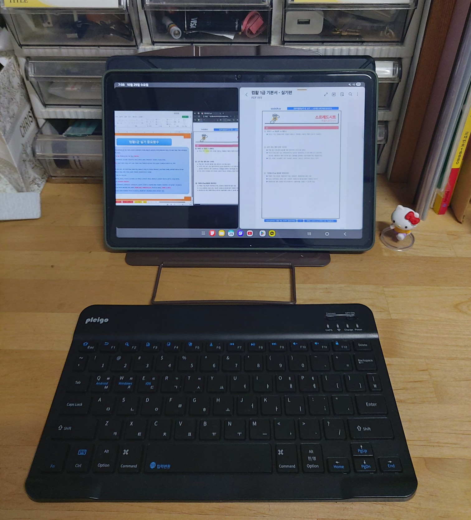 특히 액세스는 처음 들어서 처음에 따라가기 너무 힘든 거에요. 그래서 교재를 하나는 필기 있는 버전, 하나는 필기 없는 버전으로 해서 처음에 할 때는 필기 마구마구해서 밖에서도 쉽게 볼 수 있게 메모를 했구요. 하나는 필기 없는 버전으로 해서 실전처럼 연습할 때 패드 세로로 세운 후에 시험장처럼 연습했습니다!