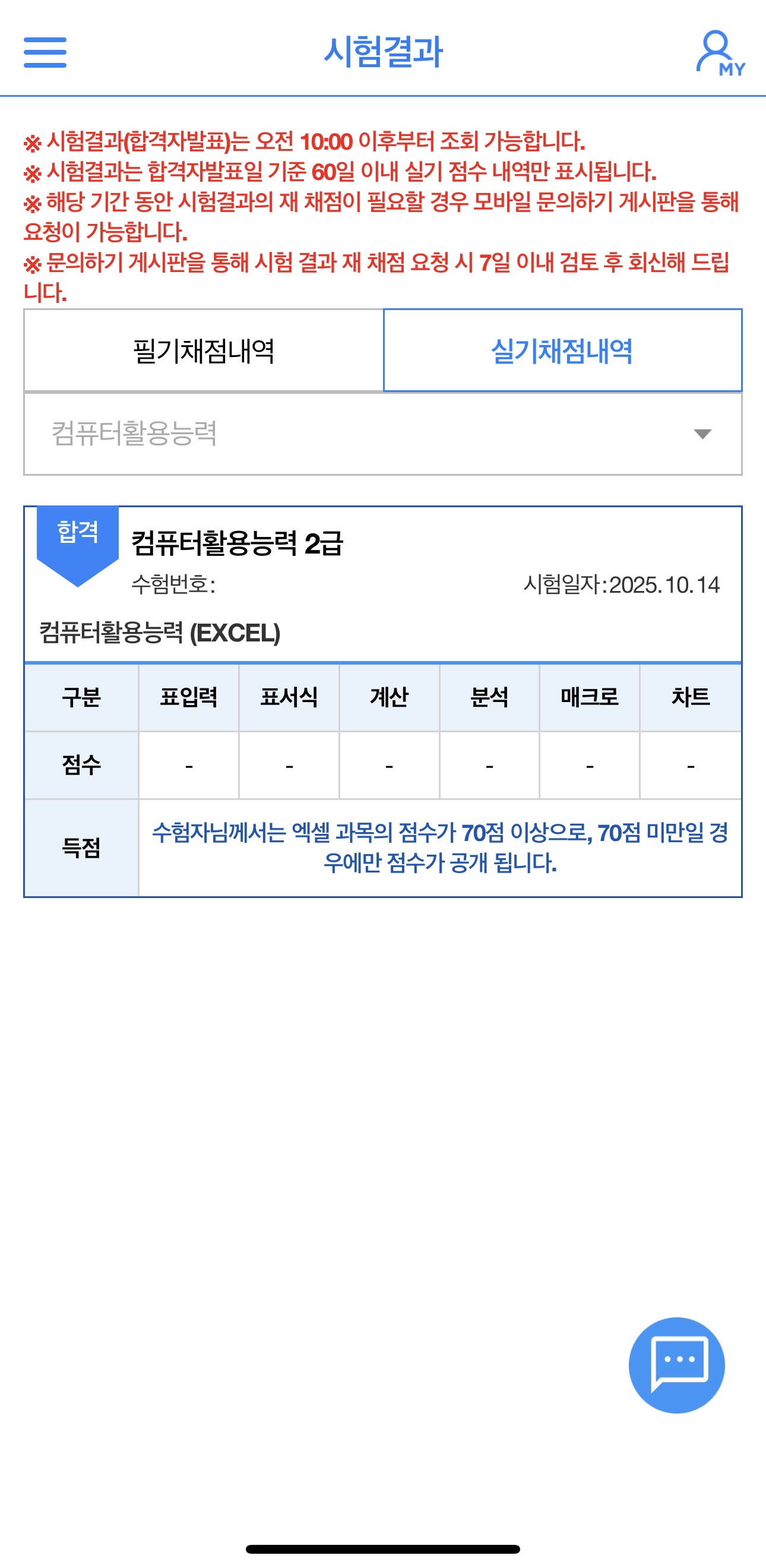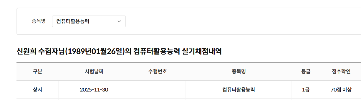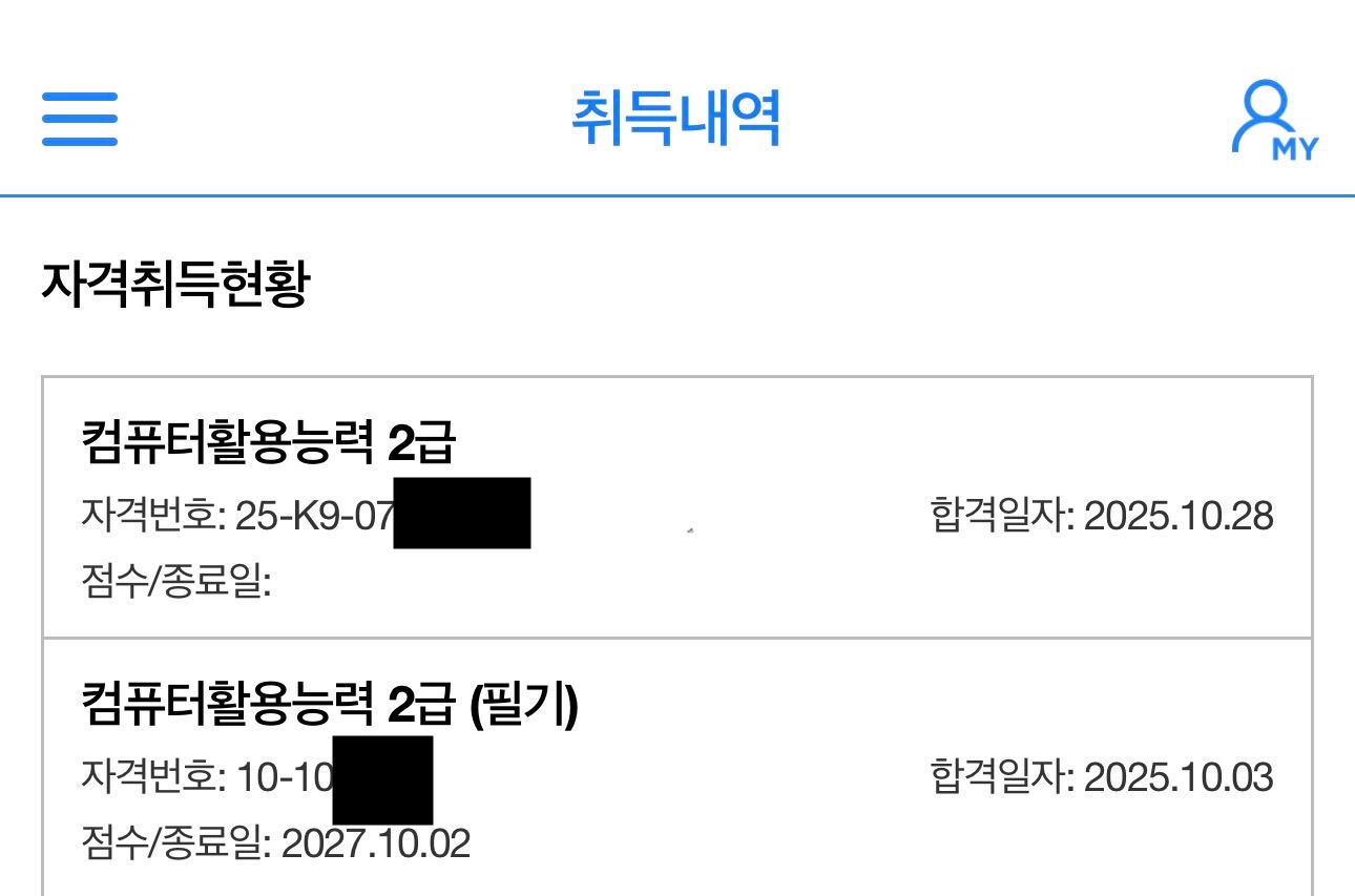 [ 내돈내산 ! 컴활 2급 ! 필기 / 실기 합격 후기 !!!! ] 환갑이 넘은 나이에 국가자격증 취득에 도전 하였네요. 너무 늦은 나이에 기억력과 타자능력이 걱정이 많이 되었지만 도전을 결심하고 혼자 공부하여 취득하기는 너무 힘들 것 같아 인터넷, SNS등 여기저기를 찾아보다가 "애드투 이미남 컴활"에 딱 꽂혀서 바로 수강 신청을 하였습니다. "내돈내산" 컴퓨터 활용 2급 자격 조기 취득을 목표로 인강을 통한 투자가 필요 할 것 같아 "내돈내산 애드투 이미남 컴활 과정"을 수강신청하여 공부을 하였네요. 그렇게 비싼 비용은 아니었어요 1급은 무리인 것 같아서 "컴퓨터활용2급 자격 필기/실기"를 준비 하였습니다. 25년 4월 15일에 수강신청하여 우선 필기을 준비 하였고 4월30일 필기시험 접수하여 "응시 횟수 1회만에 15일 공부하여" 합격 하였네요 필기 합격하고 5월20일 실기시험 접수하고 "응시횟수 1회만에 15일 공부하여" (5월초 연휴 휴무는 놀았어요. . . . ㅎㅎㅎ) 실기시험도 합격, 최종 자격 취득 하였습니다. "필기 합격 공부법"은 인강을 충실히 수강하면서 애드투에서 제공한 자료 및 모의테스트을 2회이상 반복 공부 하였습니다. "실기 합격 공부법"은 실기가 많이 부족하기때문에 특별히 더 공을 들여 공부시간을 필기 준비 시간의 3배는 투자한 것 같아요. 일단 인강 전과목을 충실히 1회 들은후, 2회차 부터는 먼저 스스로 문제을 풀어보고 인강을 다시 듣는형태로 하였고, 인강 전과정을 총 3회 반복 학습 하였네요 무엇보다도 교재의 내용이 충분히 좋았고 특히 이미남강사님의 쉬운 설명과 중요한 사항의 반복 설명은 많은 도움이 되었습니다. 늦은나이에 타자 및 실기 능력이 떨어져서 많이 걱정하였는데 필기, 실기 총 한달여만에 단 1번씩 응시하여 자격을 취득한 것은 애드투의 충실한 교재내용과 이미남강사님의 탁월한 강의 덕인 것 같습니다. 애드투 이미남컴활을 선택 한 것은 너무 잘 했던 것 같습니다. 이내용을 빌어 감사드려요~~~ 시험 합격 인증 사진 첨부 합니다.
