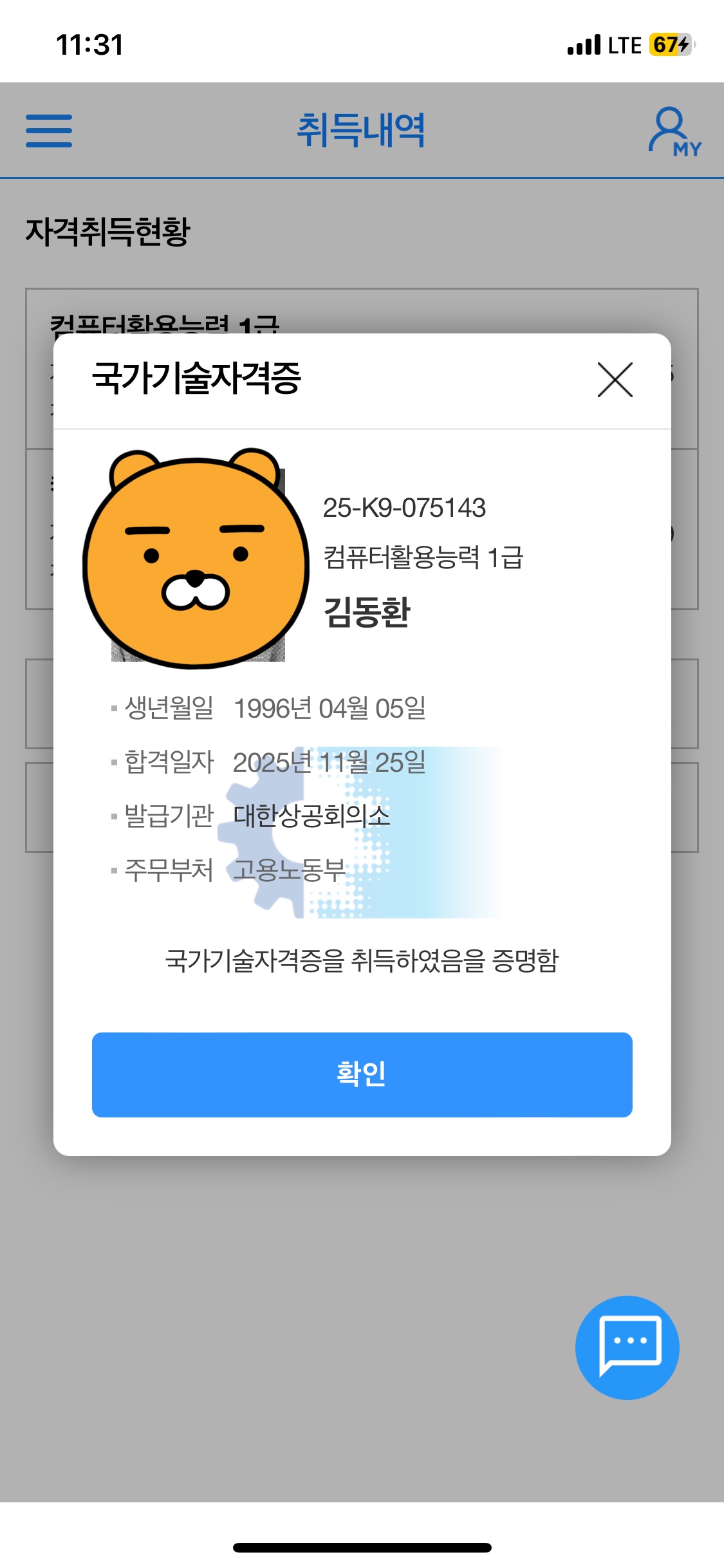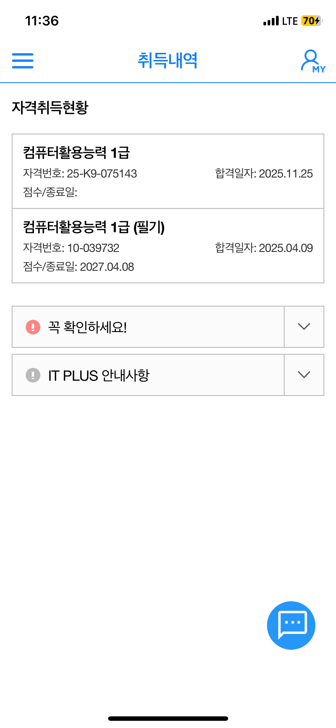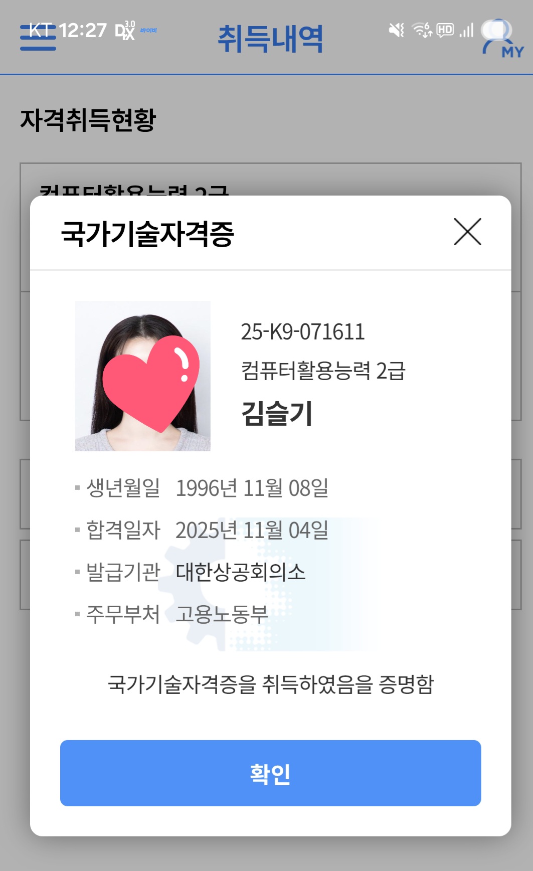 [ 내돈내산 ! 컴활 2급 ! 필기 / 실기 합격 후기 !!!! ] 환갑이 넘은 나이에 국가자격증 취득에 도전 하였네요. 너무 늦은 나이에 기억력과 타자능력이 걱정이 많이 되었지만 도전을 결심하고 혼자 공부하여 취득하기는 너무 힘들 것 같아 인터넷, SNS등 여기저기를 찾아보다가 "애드투 이미남 컴활"에 딱 꽂혀서 바로 수강 신청을 하였습니다. "내돈내산" 컴퓨터 활용 2급 자격 조기 취득을 목표로 인강을 통한 투자가 필요 할 것 같아 "내돈내산 애드투 이미남 컴활 과정"을 수강신청하여 공부을 하였네요. 그렇게 비싼 비용은 아니었어요 1급은 무리인 것 같아서 "컴퓨터활용2급 자격 필기/실기"를 준비 하였습니다. 25년 4월 15일에 수강신청하여 우선 필기을 준비 하였고 4월30일 필기시험 접수하여 "응시 횟수 1회만에 15일 공부하여" 합격 하였네요 필기 합격하고 5월20일 실기시험 접수하고 "응시횟수 1회만에 15일 공부하여" (5월초 연휴 휴무는 놀았어요. . . . ㅎㅎㅎ) 실기시험도 합격, 최종 자격 취득 하였습니다. "필기 합격 공부법"은 인강을 충실히 수강하면서 애드투에서 제공한 자료 및 모의테스트을 2회이상 반복 공부 하였습니다. "실기 합격 공부법"은 실기가 많이 부족하기때문에 특별히 더 공을 들여 공부시간을 필기 준비 시간의 3배는 투자한 것 같아요. 일단 인강 전과목을 충실히 1회 들은후, 2회차 부터는 먼저 스스로 문제을 풀어보고 인강을 다시 듣는형태로 하였고, 인강 전과정을 총 3회 반복 학습 하였네요 무엇보다도 교재의 내용이 충분히 좋았고 특히 이미남강사님의 쉬운 설명과 중요한 사항의 반복 설명은 많은 도움이 되었습니다. 늦은나이에 타자 및 실기 능력이 떨어져서 많이 걱정하였는데 필기, 실기 총 한달여만에 단 1번씩 응시하여 자격을 취득한 것은 애드투의 충실한 교재내용과 이미남강사님의 탁월한 강의 덕인 것 같습니다. 애드투 이미남컴활을 선택 한 것은 너무 잘 했던 것 같습니다. 이내용을 빌어 감사드려요~~~ 시험 합격 인증 사진 첨부 합니다.