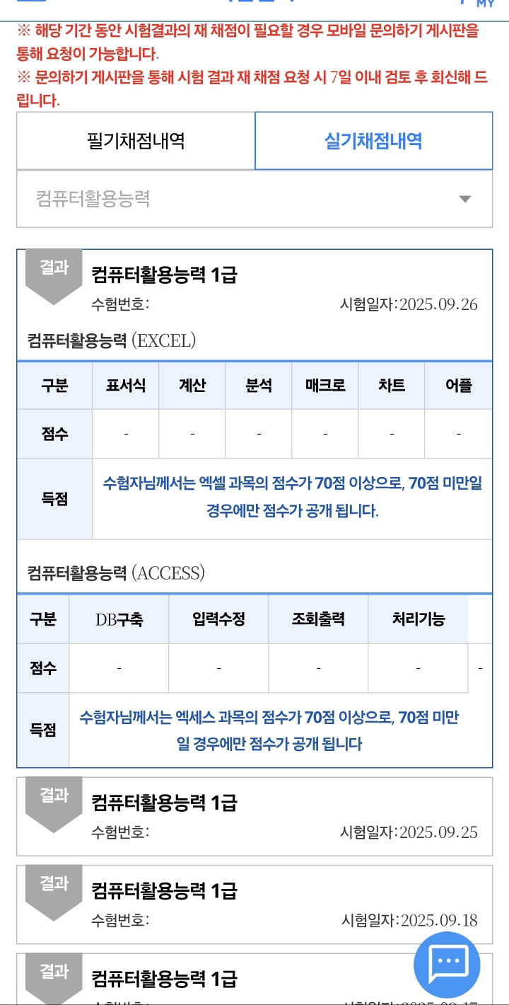 컴활 실기는 합격하면 점수가 안 나오거덩요 ㅎㅎㅎㅎㅎㅎ
