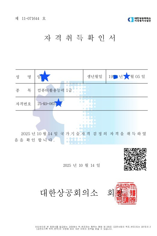 공부를 이어가면서도 지치거나 막힐 때가 있었는데, 선생님의 차분하고 친근한 설명 덕분에 끝까지 포기하지 않고 학습을 이어갈 수 있었습니다. 무엇보다도 “컴활은 꾸준히 연습하면 반드시 합격할 수 있다”는 격려가 큰 힘이 되었습니다.