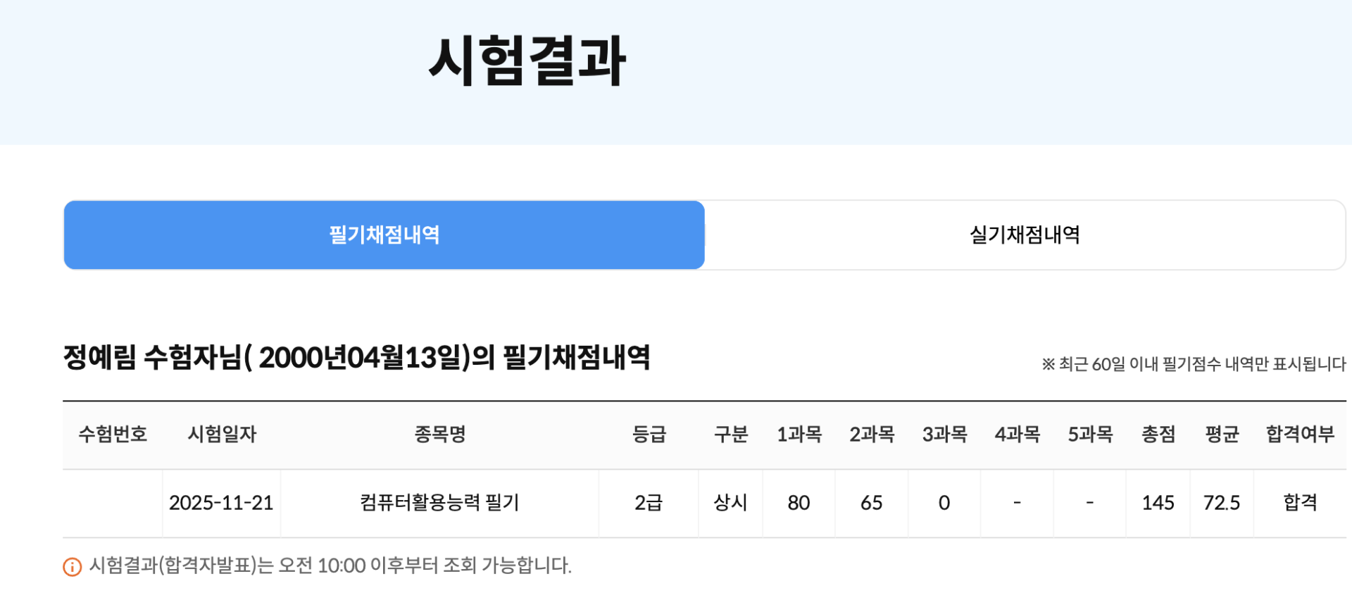 컴활1급필기 합격했습니다!