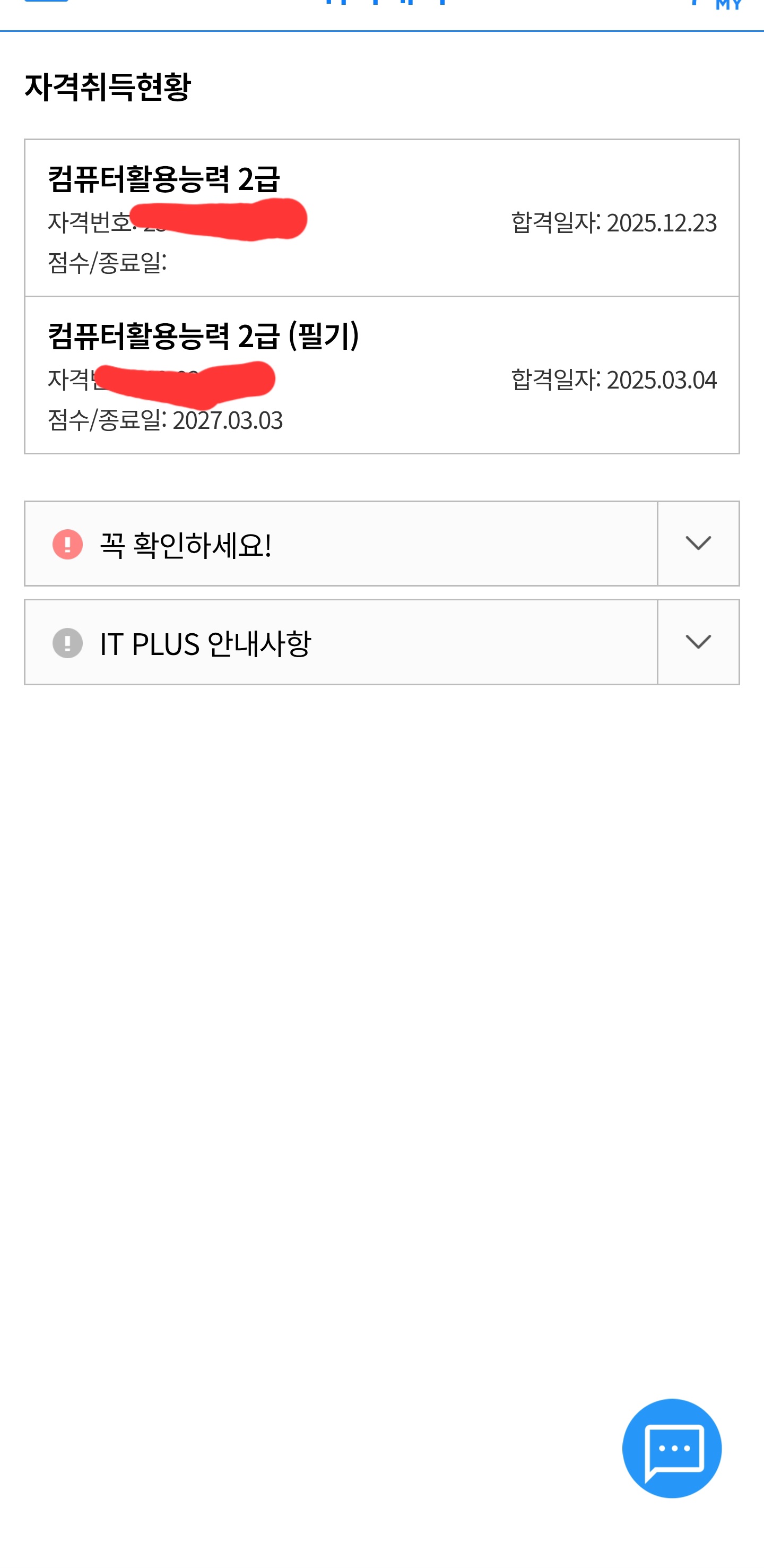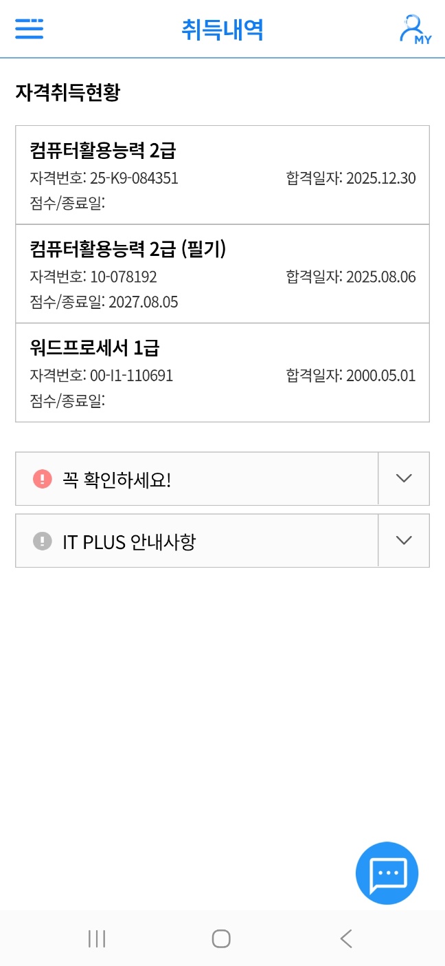 URL복사 링크가 복사되었습니다.kaka**** / 2026-02-19 #학습량이 적당해요 #커리큘럼이 좋아요 #컴팩트해요 #포인트를 잘 짚어줘요 #이해가 잘돼요 #따라가기 좋아요 #딕션이 좋아요 #적절해요 #필기+실기 내돈내산 이미남 선생님 컴활 2급 2주 직장인 찐 합격후기입니다.